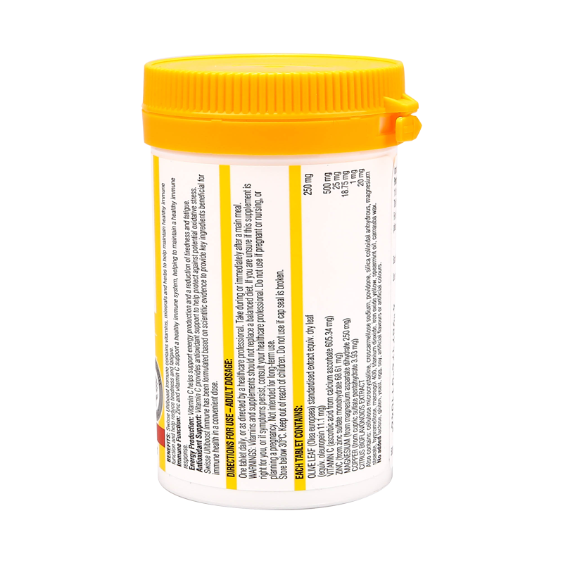 Swisse Immune is more than your average Vitamin C: a comprehensive formula: Containing Vitamin C 500mg, Magnesium 18.75mg, Copper 1mg, Zinc 25mg, Citrus bioflavonoids extract 20mg and Olive Leaf 11.1 mg