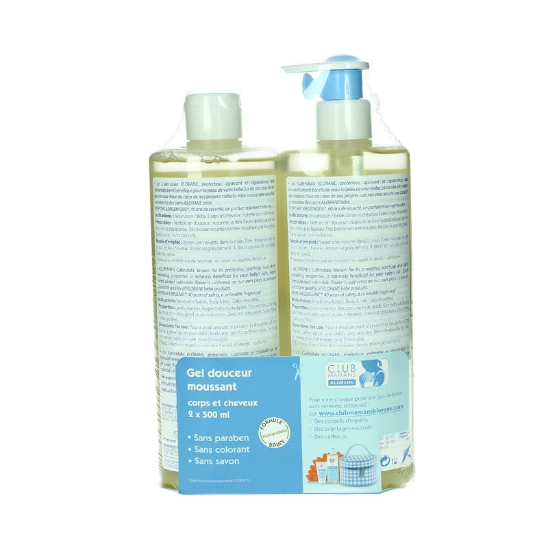 Rich extract of Calendula KLORANE, protective and soothing, gentle foaming hair and body gel Klorane is extremely soft and perfectly adapted to the fragile skin and delicate hair baby. It gently cleanses thanks to an innovative surfactant which ensures a natural conservation formula and thus ensures very good tolerance for the fragile skin of babies. It respects the hydrolipidic film (pH neutral and soap) and leaves skin delicately scented.