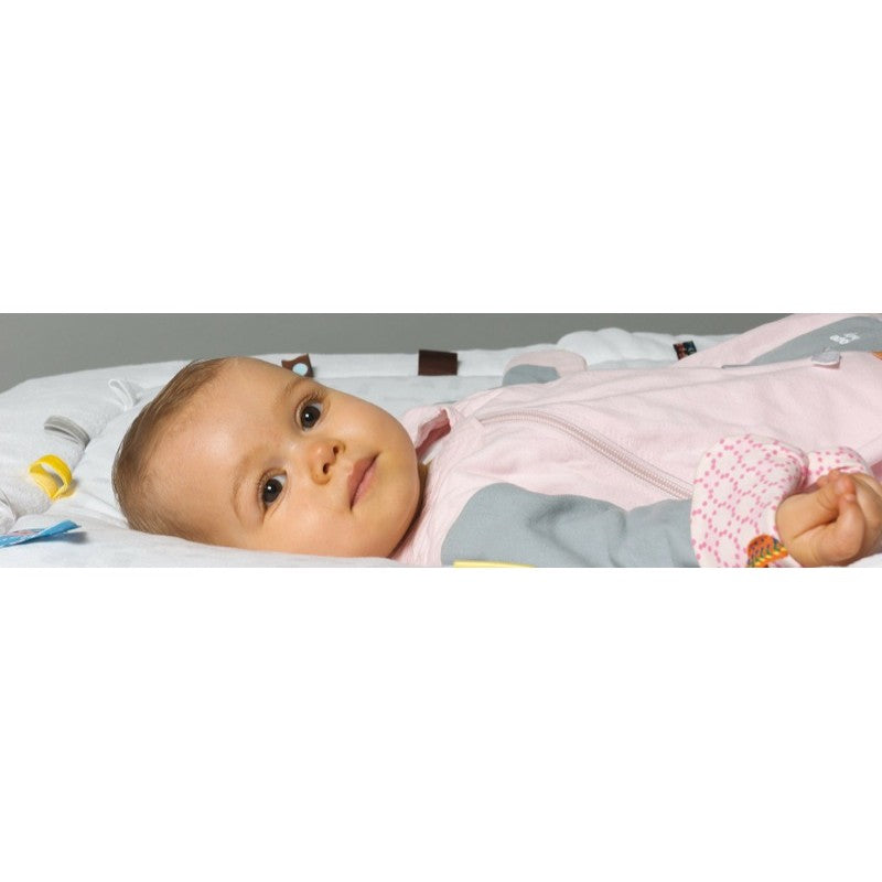 Baby will sleep long and late in this new cocoon, made of 100% cotton poplin and 100% cotton jersey. Snoozebaby's sleeping bag keeps babies warm and cozy, while remaining very soft, smooth and in shape, wash after wash. And with an extra long zipper, changing diapers without undressing is easy. Of course, Snoozebaby's signature tags are also attached to entertain and soothe baby when awake.