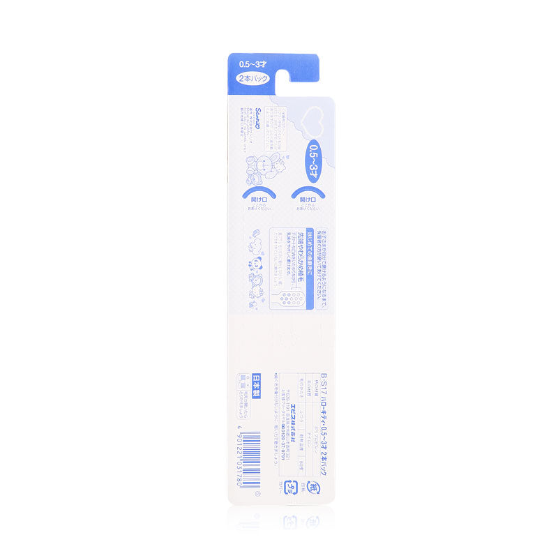This adorable little toothbrush is suitable for children who are learning to brush. Handles designed specially for small hands. For age 0.5 to 3 years. 2 toothbrushes in a pack. Great value!