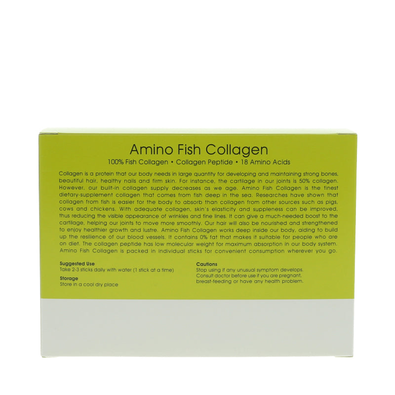NV II Amino Fish Collagen contains hydrolysed fish collagen to support elasticity of the body such as skin, hair, nails, bones, muscles and blood vessel.