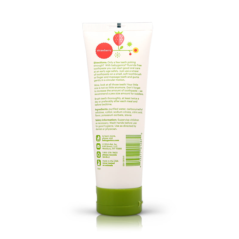 So safe and yummy it’s habit forming. (That’s a good thing.) Good (and bad) habits start crazy early. Teach the love of brushing from tooth one. Softly, safely brush baby’s gums and that first pearly white with yummy, fluoride free toothpaste. Your baby’s future smile will thank you! Totally safe to swallow (not that you want to start a habit)
