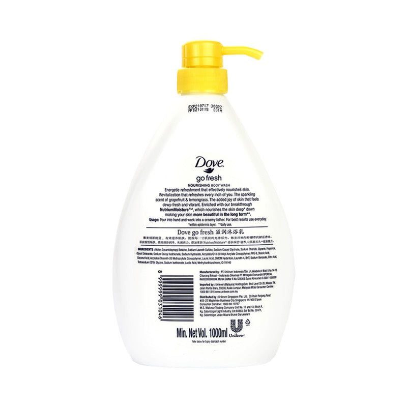 Dove go fresh Revitalize Body Wash is a caring freshness with the vibrant and juicy scent of grapefruit & lemongrass that leaves you and your skin feeling refreshed and hydrated. Dove makes your skin softer and smoother after just one shower with NutriumMoisture for more skin natural nourishment. Refreshment that effectively nourishes skin.