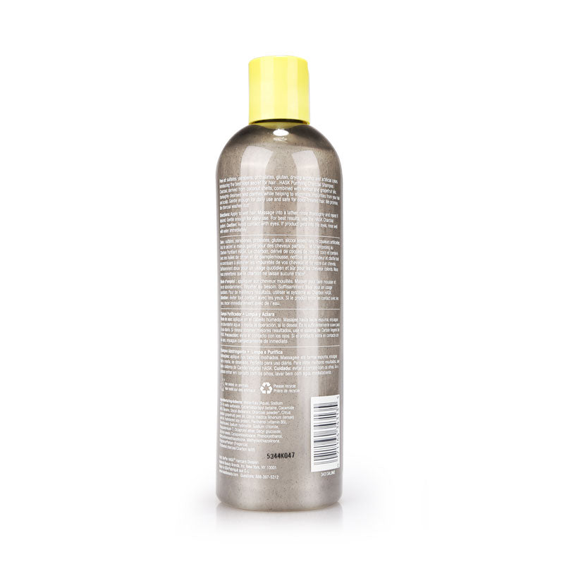 Introducing the best kept secret for hair...HASK Purifying Charcoal Shampoo. Charcoal, derived from coconut shells, combined with lemon and grapefruit oils, thoroughly cleanses and clarifies while helping to eliminate impurities from your hair and scalp. Gentle enough for daily use and safe for color-treated hair. We promise, the charcoal washes out!