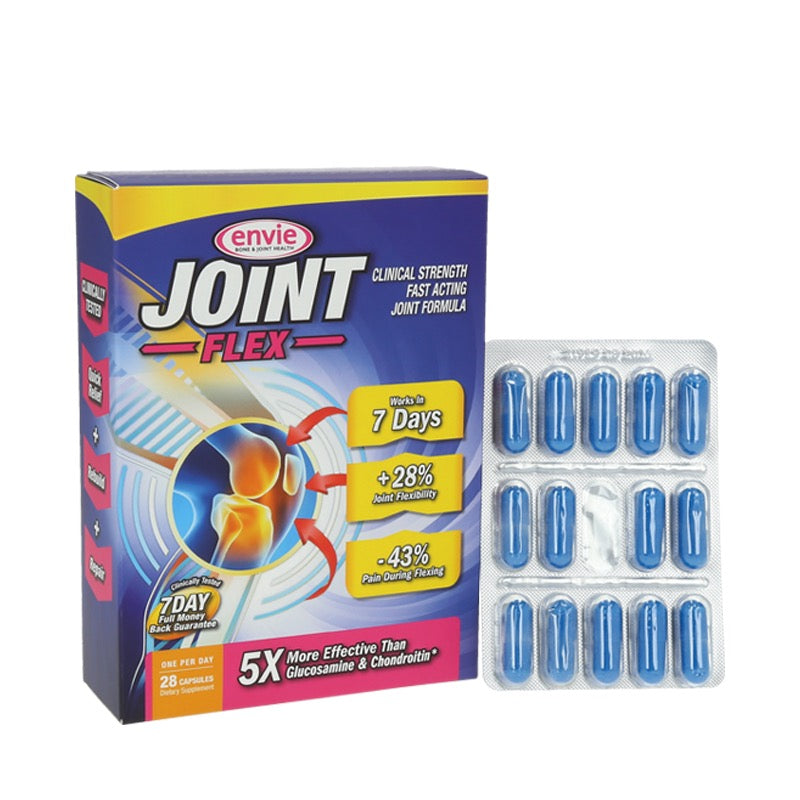 Envie Joint Flex contains a patented eggshell membrane extract that has naturally occuring glycosaminoglycan such as collagen, hyaluronic acid and chondroitin found in cartilage and connective tissue.