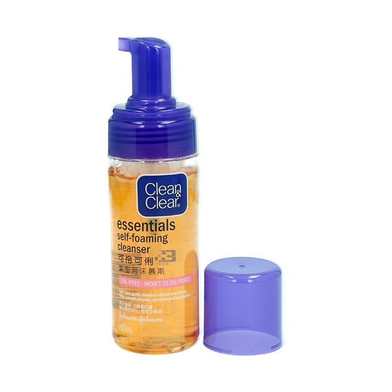 Clean&Clear Essentials self-foaming cleanser produces light airy foam that gently cleanses to remove excess oil & dirt without over-drying. Contains anti-bacteria ingredients to help prevent pimples & blackheads. Leaves your skin feeling clean & beautifully clear.