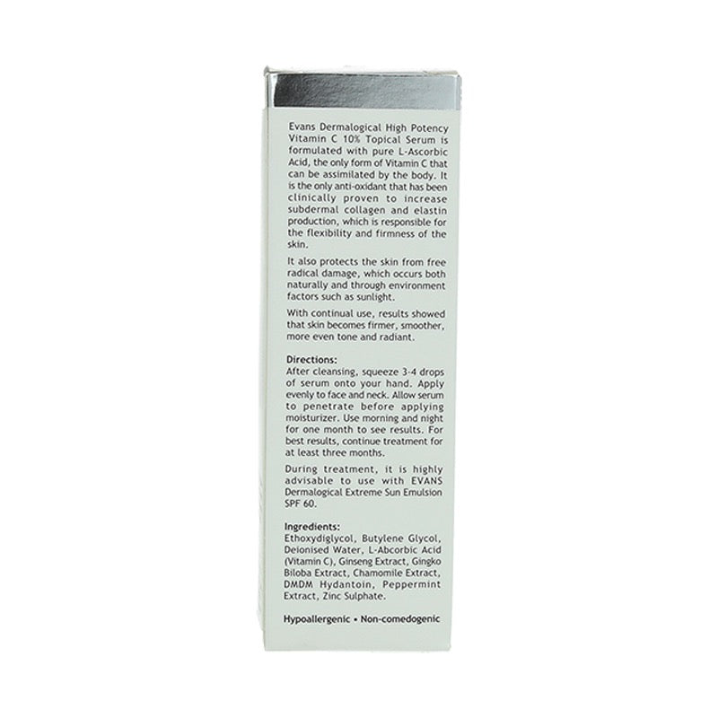 Evans Dermalogical High Potency Vitamin C 10% Topical Serum are formulaated to prevent skin ageing and evens out skin tone