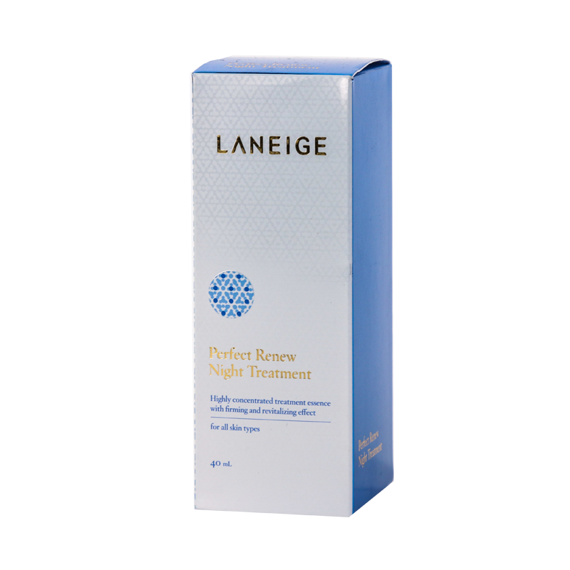 Laneige Perfect Renew Night Treatment contains aloe extract gives moisturizing effect, chestnut extract cares dead cell. It works like a sleeping pack that improves your skin while sleeping with moisturizing powder ampule effect. Laneige Perfect Renew Night Treatment also contains Himalaya Snow Water that contains abundant snow minerals provides nutrition and vitality to the skin and realizes the transparent and pure skin from deep inside of skin.