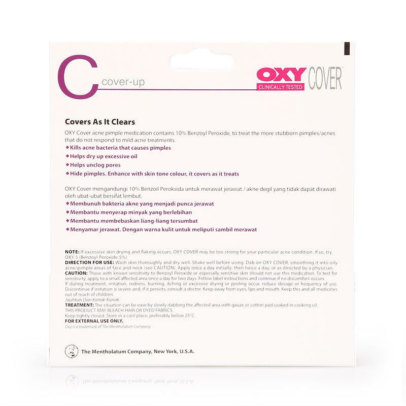 Covers as it clears, Oxy Cover kills acne bacteria that causes pimples and helps dry up excessive oil. It helps unclog pores and hide pimples. Enhance wth skin tone colour, it covers as it treats.
