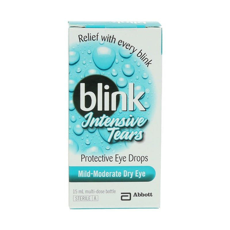 Blink® Intensive Tears Eye Drops bring you relief with every blink. Blink® Intensive Tears Eye Drops advanced formula adapts to your dry eye needs for longer-lasting relief. In addition, you will experience significantly less blurring with Blink® Intensive Tears than with the leading lubricating eye drop