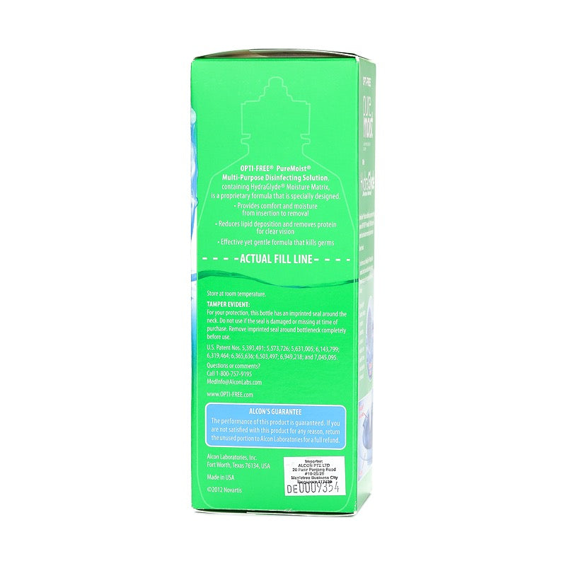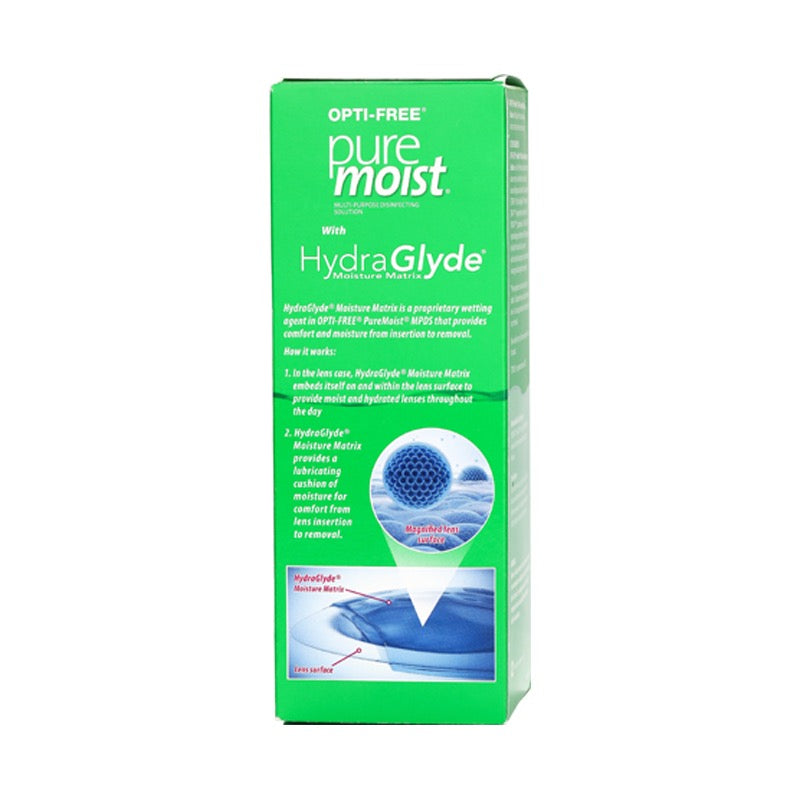 OPTI-FREE® PureMoist® Multi-Purpose Disinfecting Solution provides comfort and moisture from insertion to removal. HydraGlyde® Moisture Matrix works independently of your tear film to keep moisture on your lenses. Helps to...