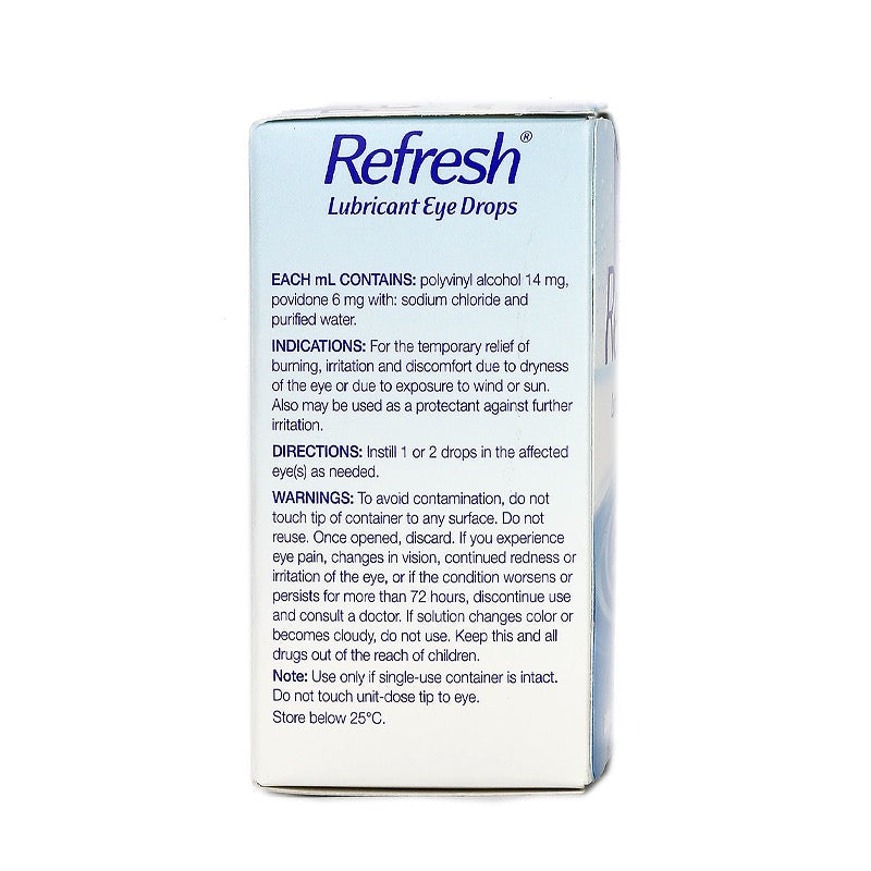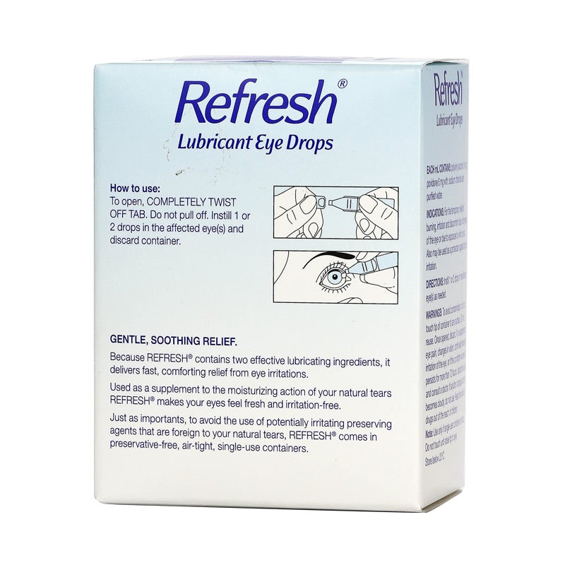 Because REFRESH contains two effective lubricating ingredients, it delivers fast, comforting relief from eye irritations.