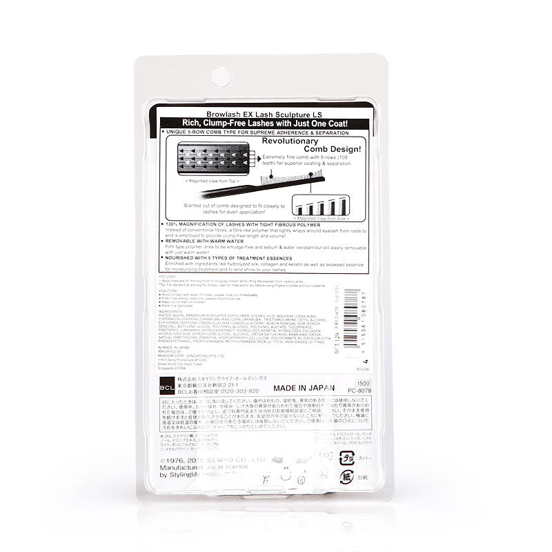Instead of conventional fibres, get 130% magnification of lashes with tight fibrous polymer, a fibre-like polymer that tightly wraps around eyelash from roots to end is employed to provide clum-free length and volume. It provides 24h smudge-free and sebum, water, perspiration-resistant and yet still easily removable with just warm water. Enriched with 5 types of treatment essences ingredients like hydrolyzed silk, collagen and keratin as well as seaweed essence for moisturizing treatment and to lend shine to your lashes.
