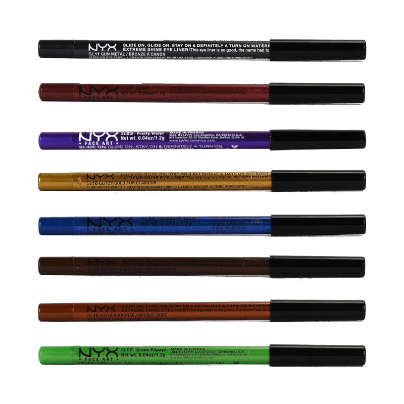 Don’t let the softness of this pencil fool you. This formula doesn't smear or smudge and delivers powerful, robust colors. It’s like a liquid eye liner without the mess. Available in 18 sleek shades. Glitzy gold is a pure gold colour.
