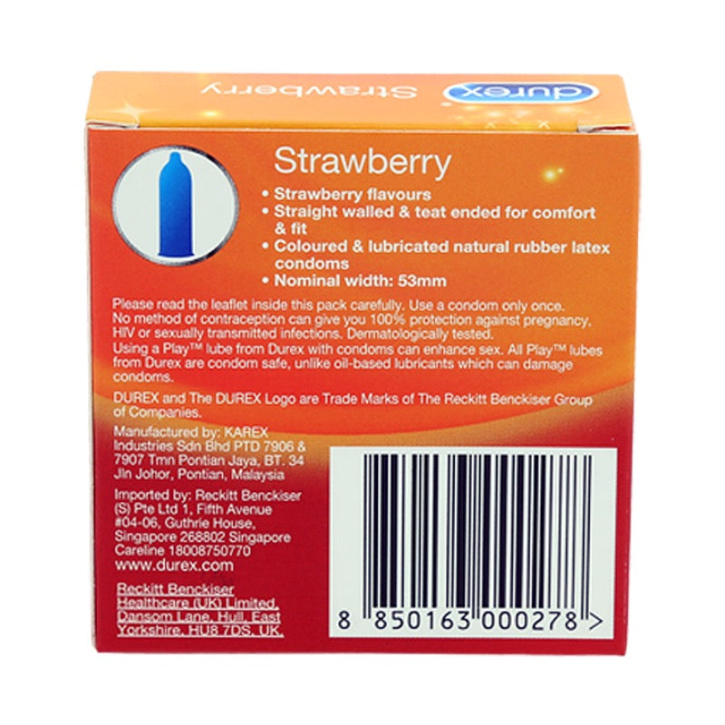 Durex doesn't just meet worldwide condom quality standards, it exceeds them, giving you the confidence to love the sex you have. 1. Nominal width 53mm. 2. Coloured and lubricated natural rubber latex condoms. 3. Straight walled and teat ended for comfort & fit. 4. The special way we make our condoms means they smell better, so there are no unpleasant distractions, you can just relax and enjoy. 5. Dermatologically tested. 6. 100% electronically tested.