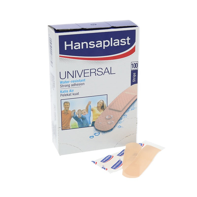 Hansaplast Universal plasters are suitable for covering all types of smaller wounds. The material is breathable and is water-repellent. The non-stick woundpad protects and cushions the wound. The strong adhesion ensures that the plaster stays in place.