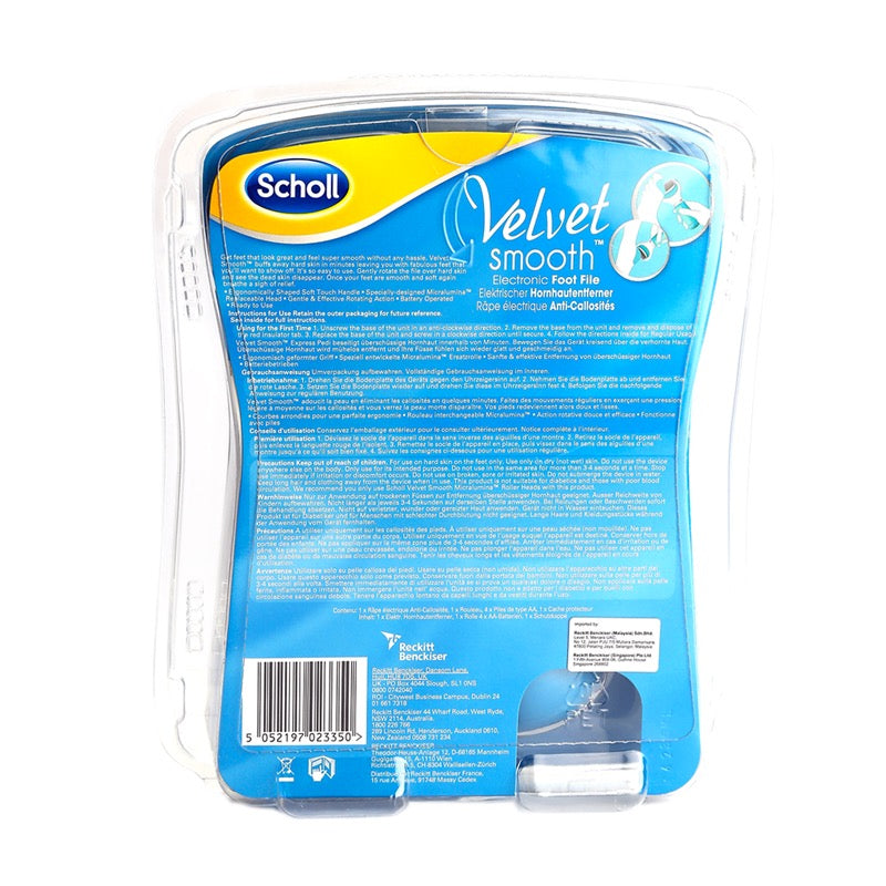 Get feet that look great and feel super smooth without any hassle. Velvet Smooth buffs away hard skin in minutes leaving you with fabulous feet that you'll want to show off. Once your feet are smooth and soft again breathe a sigh of relief. Easier than ever before! The Scholl Velvet Smooth Express Pedi functions without any sharp blades and is furnished with a safety stop that stops the device as soon as too much pressure is applied to the skin.