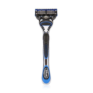 The razor has been reengineered and redesigned to create Gillette's most comfortable shave.coating. Plus the new blade stabiliser maintains optimal blade spacing for comfort and allows the blades to adjust to the contours of your face. The redesigned ergonomic ribbed handle features added grips and channels away water for better control in wet conditions. Other improved features include an enhanced Lubrastrip which is now larger, making for a smooth stroke. Its improved formula, with mineral oil and lubricating polymers, enables the razor to glide smoothly over your skin. Meanwhile the Snowplough comfort guard channels away excess shave prep to help maintain blade contact for a close, comfortable shave and the Snowplough comfort guard channels away excess shave prep to help maintain blade contact for a close, comfortable shave.