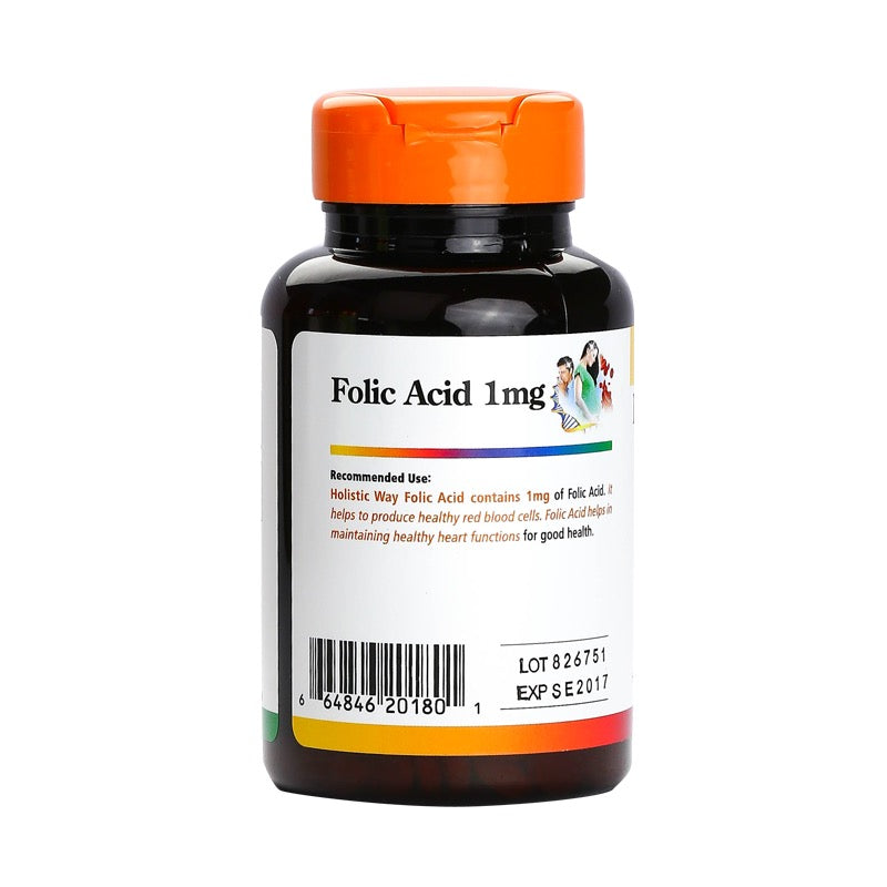 Holistic Way Folic Acid contains 1mg of Folic Acid. It helps to produce healthy red blood cells. Folic Acid helps in maintaining healthy heart functions for good health.