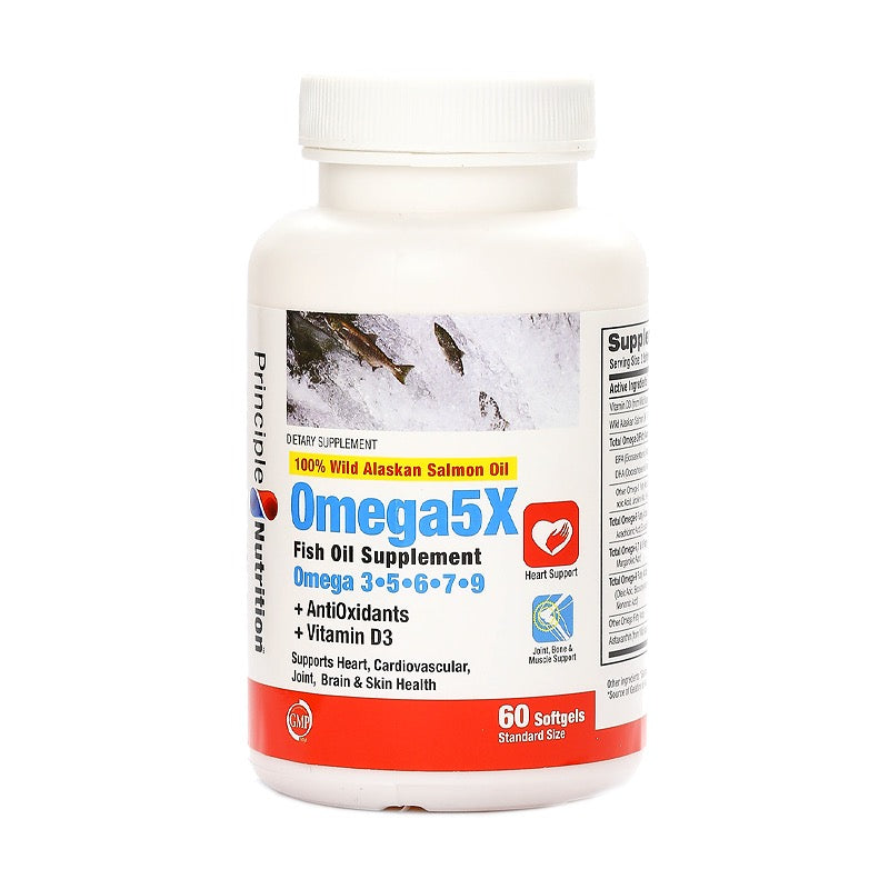 Omega5X is the full-spectrum of omega 3-5-6-7-9 supplement to support Heart, Cardiovascular, Joint, Brain and Skin Health. Using Wild Salmon Oil that is made using a gentle, cold-pressed process that preserves all 5 essential fatty acids (EFAs) found naturally in wild salmon. The unique process allows us to capture every part of the salmon oil making it as close to eating whole fish as you can get in a supplement.