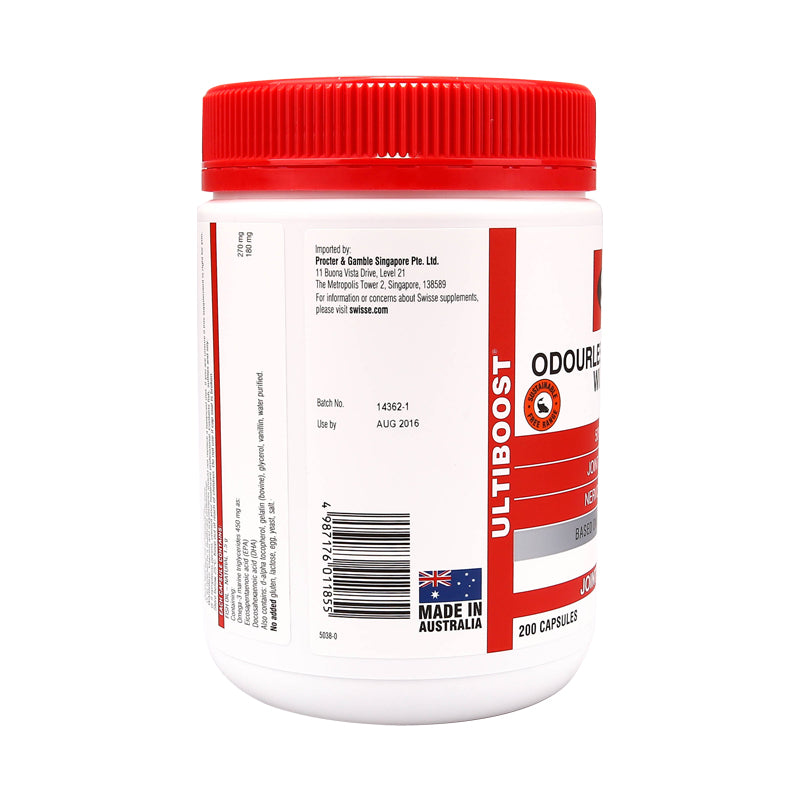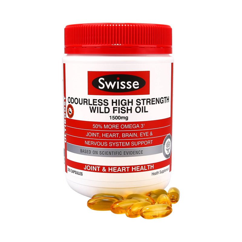 Swisse Ultiboost Odourless Wild Fish Oil supports healthy joint, heart, brain, eye & nervous system. It has 50% more omega-3 for brain, heart&joint health compared to standard 1000mg Fish Oils...