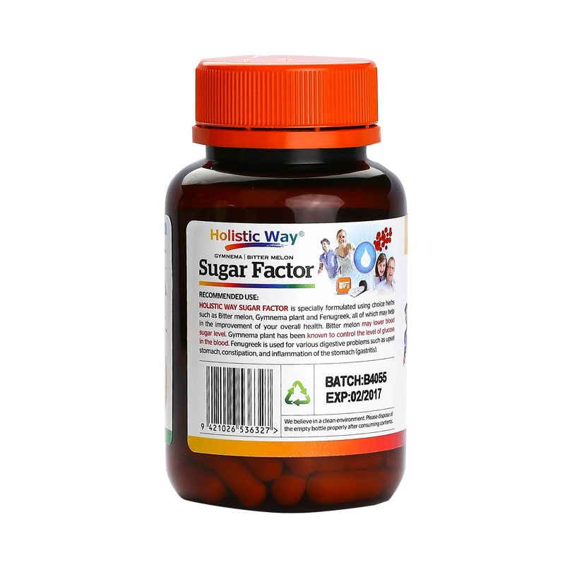 Holistic Way Sugar Factor is specially formulated using choice herbs such as Bitter Melon, Gymnema plant and Fenugreek, all of which may help in the improvement of your overall health. Bitter Melon may support healthy blood sugar level. Gymnema plant has been used widely to support healthy blood glucose level. Fenugreek is used for digestive health. Each Vcap contains the following extracts: