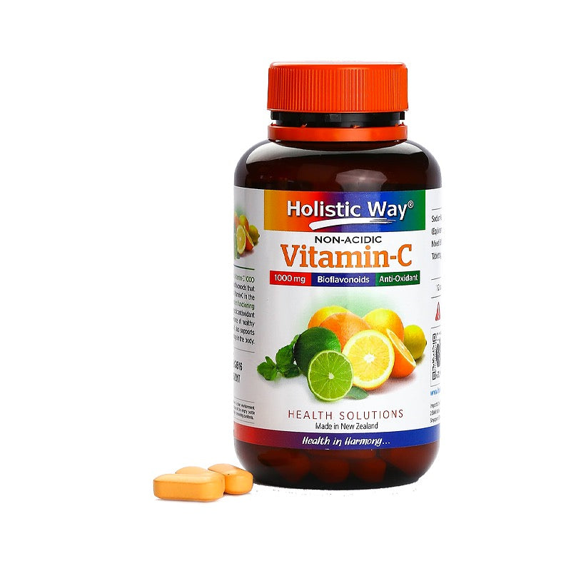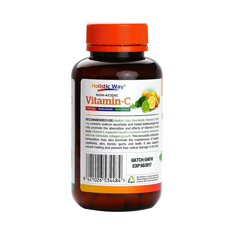 Holistic Way Non-Acidic Vitamin-C 1000mg contains sodium ascorbate (1143mg) and mixed bioflavonoids (50mg) that may promote the absorption and effects of Vitamin-C in the body. Vitamin-C supports healthy immune system...