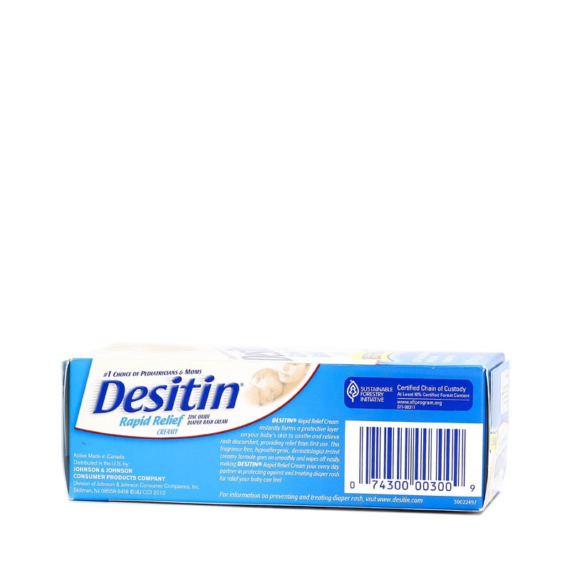 DESITIN® rapid relief cream is a smooth & creamy diaper rash treatment containing Zinc Oxide, which known to block moisture from baby's skin. The barrier cream forms a protective layer on your baby's skin to soothe & relieve diaper rash discomfort, providing relief from the very first use. It is safe & gentle enough to use after each diaper change, to protect against & treat diaper rash.