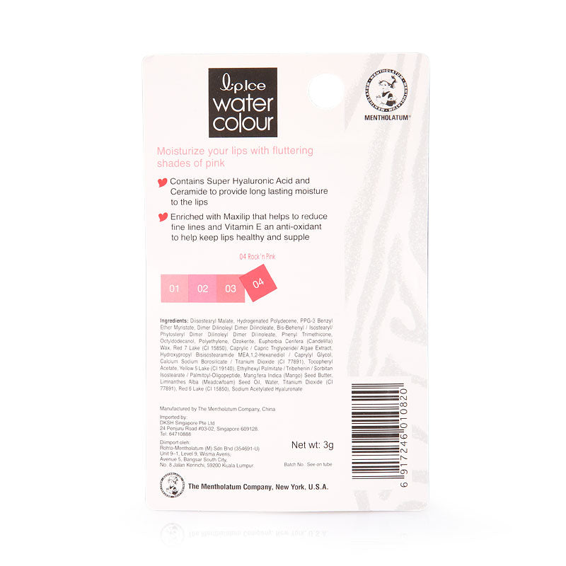 LipIce Water Colour helps to moisturize your lips with fluttering shades of pink. It contains Super Hyaluronic Acid and Ceramide to provide long lasting moisture to the lips. Enriched with Maxilip that helps to reduce fine lines and anti-oxidant Vitamin E to help keep lips healthy and supple.