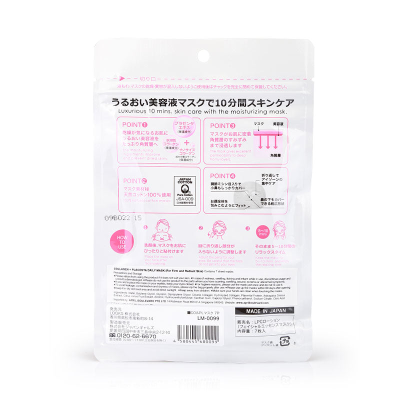 Japan Gals Collagen + Placenta Daily Mask 7sheets