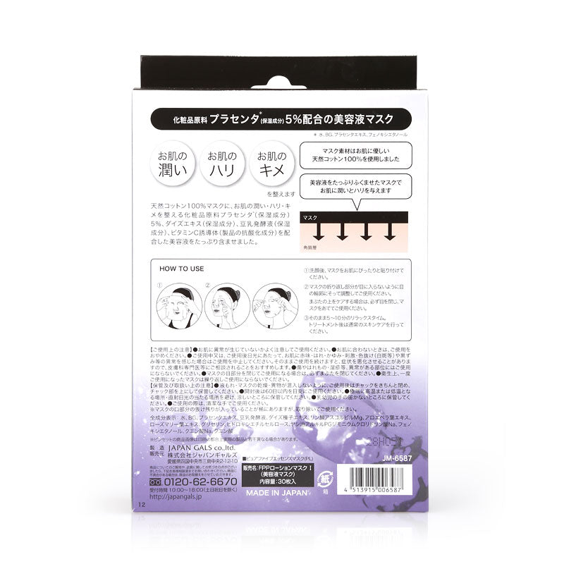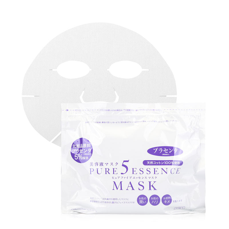 100% natural cotton mask is soaked in Pure Essence, containing 5% undiluted solution, soy milk and Vitamin C derivative for viscosity. Alcohol-free and 100% Made in Japan.