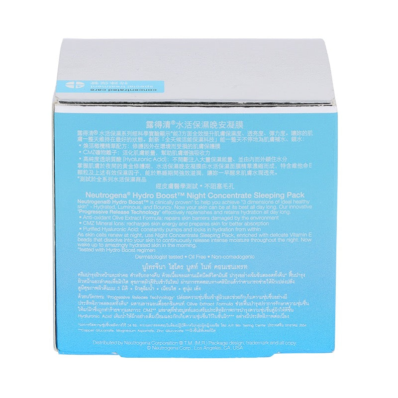Neutrogena Hydro Boost Night Concentrate Sleeping Pack is enriched with delicate Vitamin E beads that dissolve into your skin to continuously release intense moisture throughout the night, waking up to amazingly hydrated skin in the morning. Tested with Hydro Boost regimen. Dermatologist tested. Oil Free. Non-comedogenic.