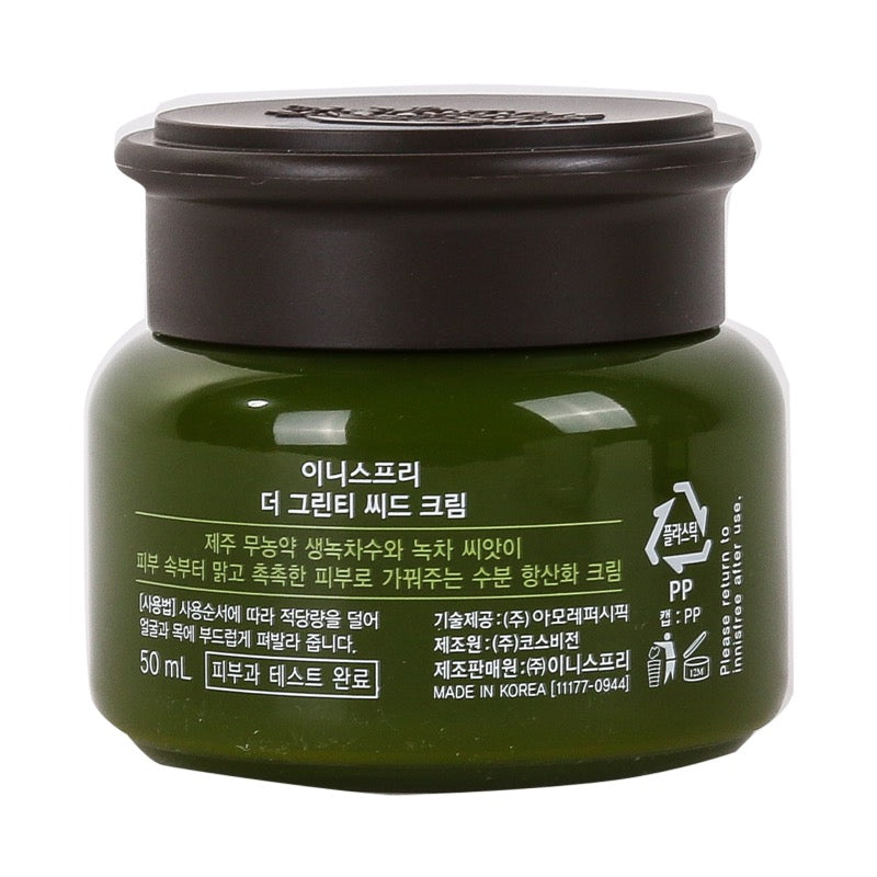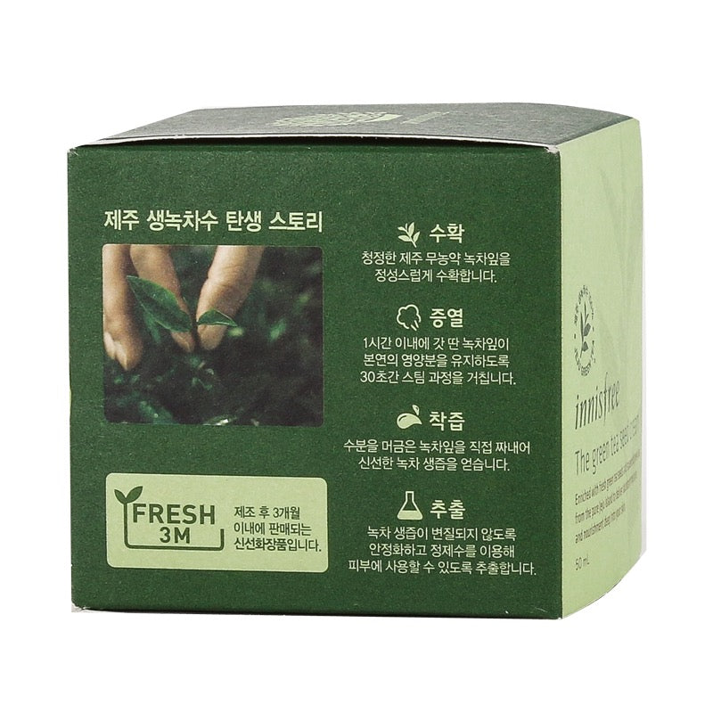 A moisturizing and nourishing serum with eco-friendly Jeju fresh green tea & green tea seeds. More moisturizing and fresh with 100% squeezed green tea, rich in amino acids and minerals, green tea from the fresh Jeju green tea leaves hydrate skin. The fresh green tea water hydates skin and green tea seed oil creates a strong moisture barrier to keep skin moisturized. With the help of the anti-oxidant in green tea, it is rich in moisture keeps skin healthy and moisturized without stickiness.