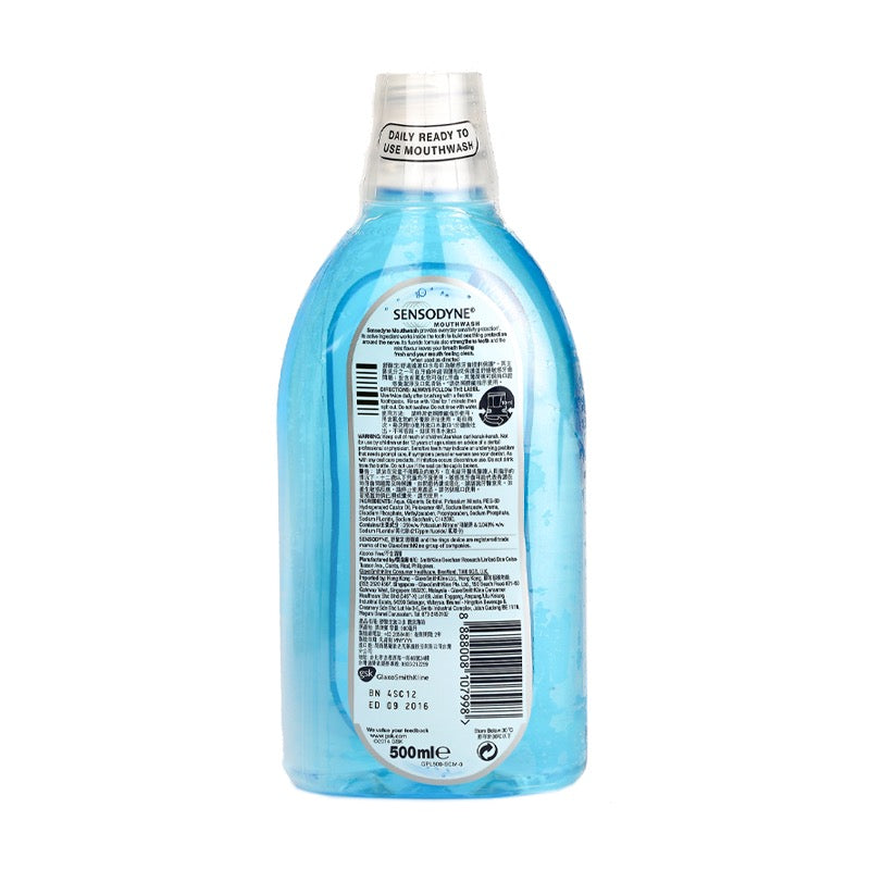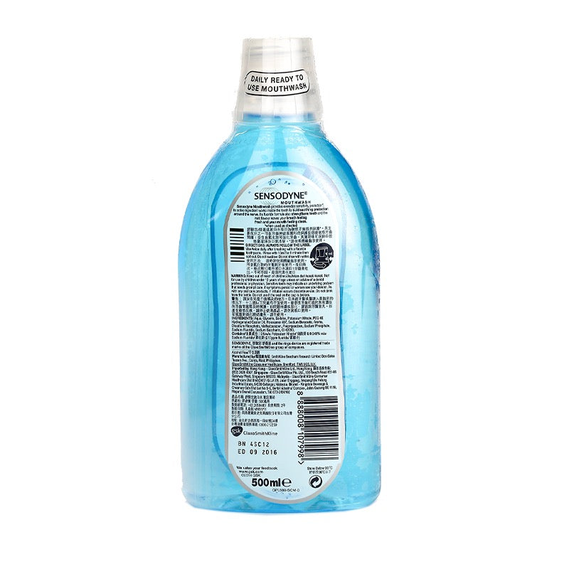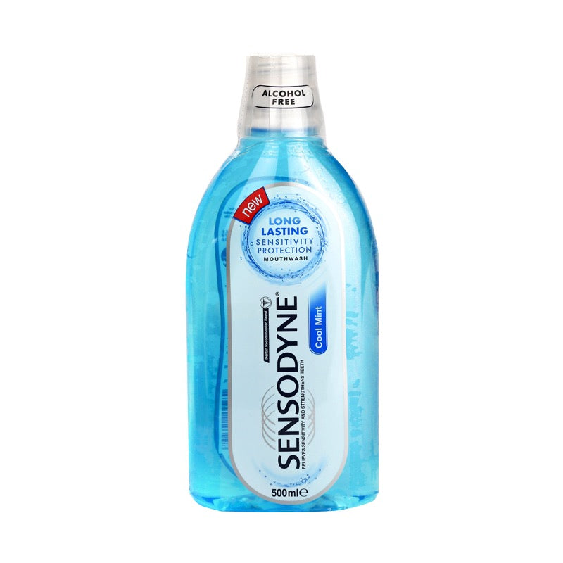 People with sensitive teeth now have a Sensodyne mouthwash specifically designed for them. New Sensodyne Mouthwash contains 3% w/w potassium nitrate to provide ongoing protection from dentine hypersensitivity by soothing the nerves within the tooth. Use twice daily after brushing with a fluoride toothpaste for lasting sensitivity relief.