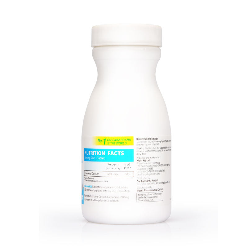 From the World's No.1 Calcium Brand*. Caltrate® contains 600mg of Elemental Calcium to help build and maintain strong bones. It meets 60% of U.S. Daily Values 2013. Each tablet contains Calcium carbonate andprovides a high amount of elemental Calcium for your bones. Caltrate® 600 can be taken with your multivitamin supplement. It is specially designed and film coated for easier swallowing. Caltrate® 600 is tested to meet United States Pharmacopeia standards for dietary supplements and is manufactured under Good Manufacturing Practices. - See more at: http://www.caltrate.sg/caltrate-600#sthash.kFUHDH5B.dpuf