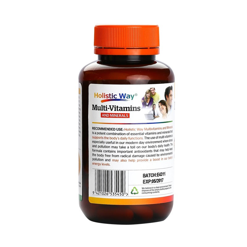 Holistic Way Multi-Vitamins and Minerals is a potent combination of essential vitamins and minerals that supports the body’s daily functions. The use of multi vitamins is especially useful in our modern daily lifestyle where stress and pollution may take a toll on our body’s daily health. The formula contains important antioxidants that may help keep the body free from radical damage caused by environmental pollution and may also help provide a boost in our body’s energy levels.