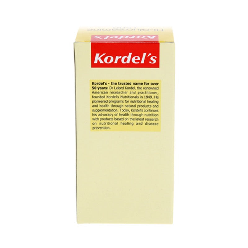 Kordel's Hi-Glucosamine 1500 contains the recommended dosage of glucosamine to aid joint health. Derived from glucosamine sulphate KCI complex. Each tablet provides a one-a-day clinical dose of 1500mg glucosamine sulphate.