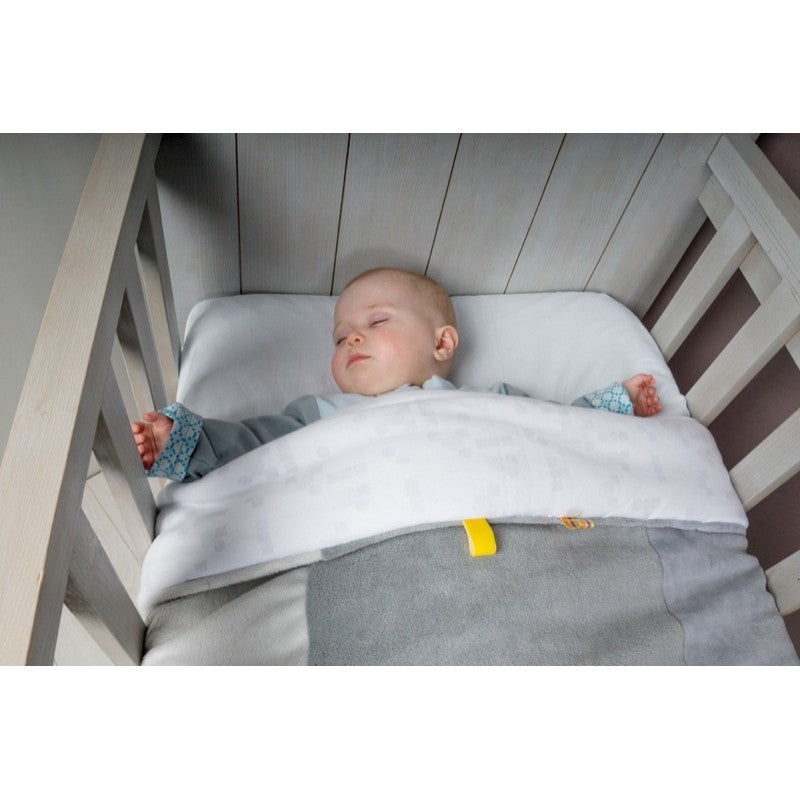 Create your baby's own comfort zone with this ultra-soft, Dutch-designed crib blanket in grey & white. This blanket is a big version of the Snoozebaby Sweet Dreaming, 100% cotton on the one side and 3 different ultra-soft materials (velours, soft coral and regular coral) in 3 different colours of grey on the other side. The blanket is comfortably warm thanks to the polyester filling. Perfectly suitable for a crib and just wonderful to dream away in his comfort zone.