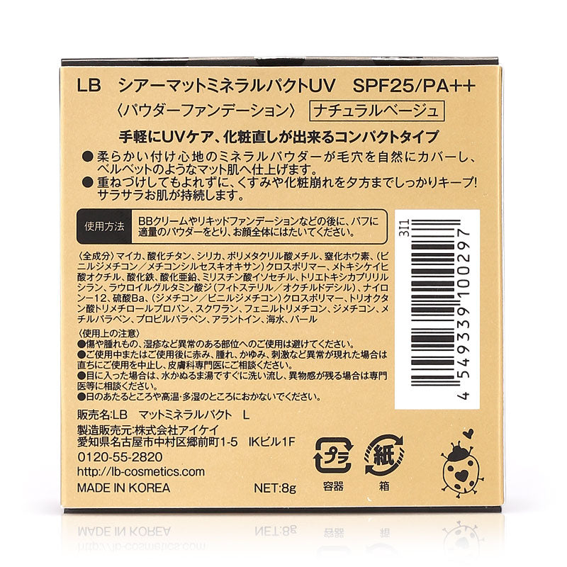 Stay matte with mineral UV powder that provide coverage to your skin and pore are more invisible. A gentle Sun protect formula with fine powder that gives you a natural finishes.