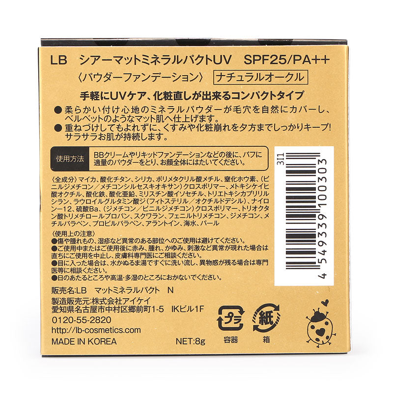 Stay matte with mineral UV powder that provide coverage to your skin and pore are more invisible. A gentle Sun protect formula with fine powder that gives you a natural finishes.