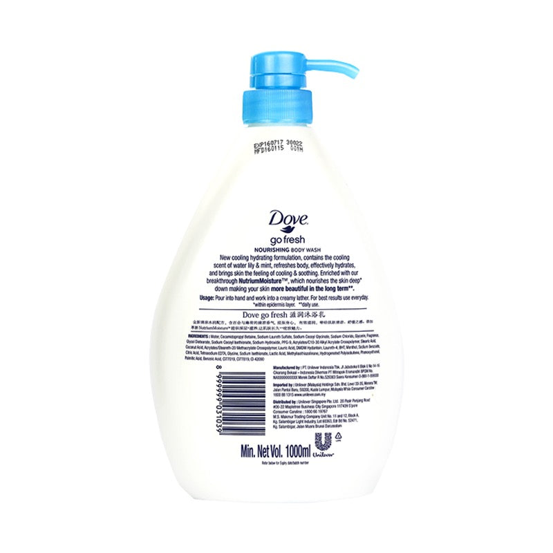 Dove go fresh Cool Moisture Body Wash leaves your skin feeling cool and refreshingly hydrated. Experience an uplifting moment for your skin with the crisp, soothing scent of water lily and mint and the skin nourishment of NutriumMoisture.