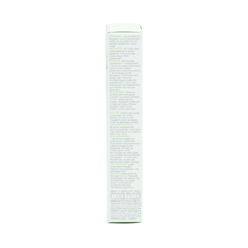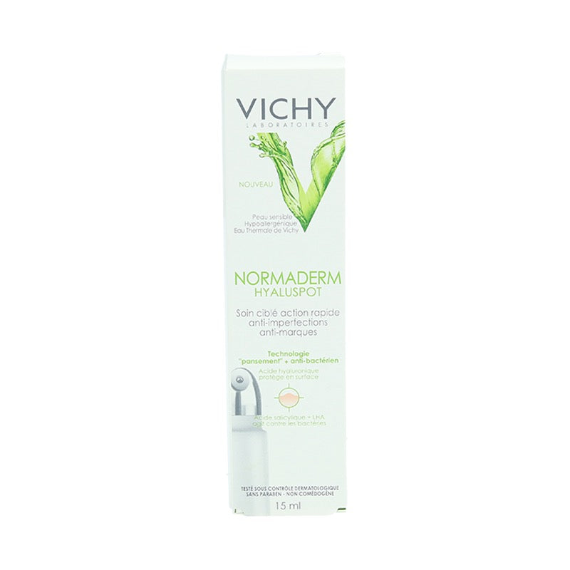 Normaderm's fast acting pimple treatment sees spots disappearing from as quickly as 2 days. A bandage-gel which penetrates quicky with its Non shiny, non sticky, non greasy texture, the hygienic cold applicator targets the pimple and relieves from pain and inflammation, eliminating acne, and prevent scars from forming with this award-winning solution. Normaderm Hyaluspot is founded on the belief that spot treatments do not have to dry out a pimple with the side effects of dry, peeling skin. Firstly, Hyaluronic acid forms an invisibles film in surface to isolate the pimple from bacterial over-contamination. LHA and salicylic acid then work deeply at the same time, on killing bacteria within the pimple. In 2 hours, 99% of bacteria responsible for pimples are eliminated and in 48 hours, the pimple disappears without leaving scars and nor drying up the skin. This is based on a clinical study on 36 men and women.