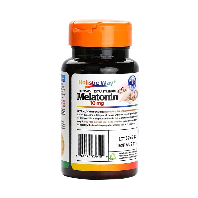 Holistic Way Melatonin 10mg is a fast-dissolving sublingual (dissolves under the tongue) tablet that allows for best possible absorption and works fast to promote and support sound sleep. It may help increase your sleep time thus giving better sleep quality for people with altered sleeping schedules like shift work and jet lag. Each tablet contains: