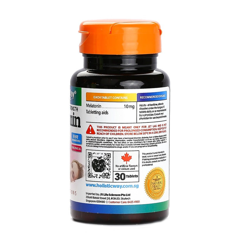 Holistic Way Melatonin 5mg is a fast-dissolving sublingual (dissolves under the tongue) tablet that allows for best possible absorption and works fast to promote and support sound sleep. It may help increase your sleep time thus giving better sleep quality for people with altered sleeping schedules like shift work and jet lag.