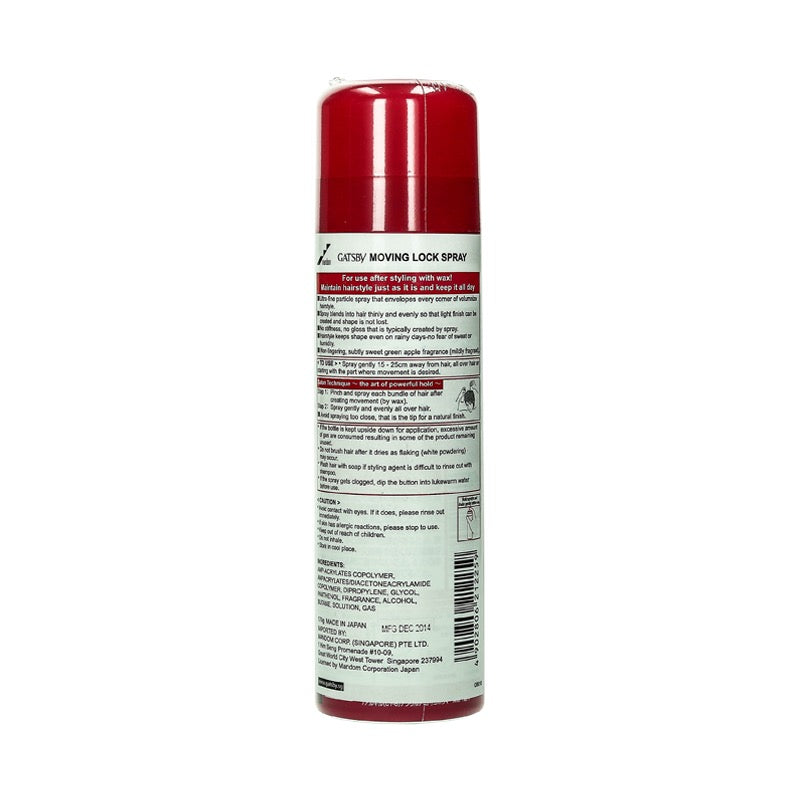 Ultra-fine particle spray that envelopes and spreads evenly on hair for a light finish and shape is not lost. No stiffness,no gloss that is typical of spray. Sweat & humidity resistant, long hold. Non-lingering,subtly sweet green apple fragrance (mildly fragrant). Recommended for use after Moving Rubber Series.