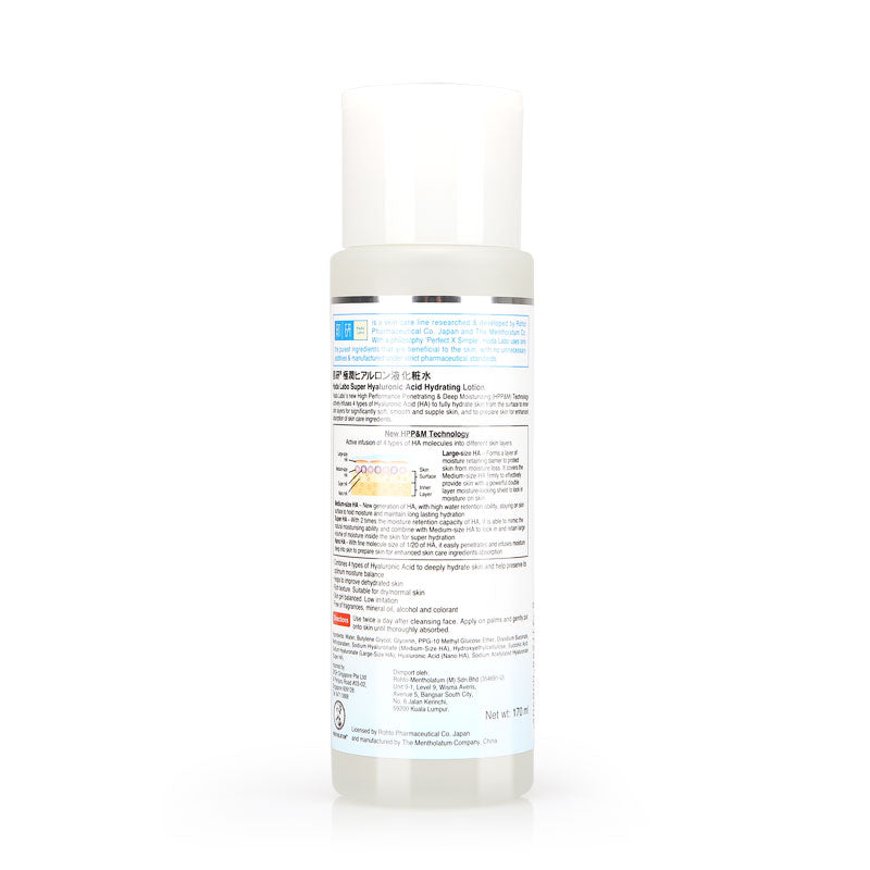 Hada Labo is a skin care line researched & developed by Rohto Pharmaceutical Co. Japan and The Mentholatum Co. With a philosophy 'Perfect X Simple', Hada Labo uses only the purest ingredients that are beneficial to the skin, with no unnecessary addictives & manufactured under strict pharmaceutical standards. Hada Labo Super Hyaluronic Acid Lotion contains the new HPP&M Technology which is an active infusion of 4 types of HA molecules into different skin layers, to deeply hydrate skin and help preserve its optimum moisture balance. It helps to improve dehydrated skin with its rich texture, and is suitable for dry and/or normal skin. Skin PH is balanced without causing irritation. Free of fragrances, mineral oil, alcohol and colorant.