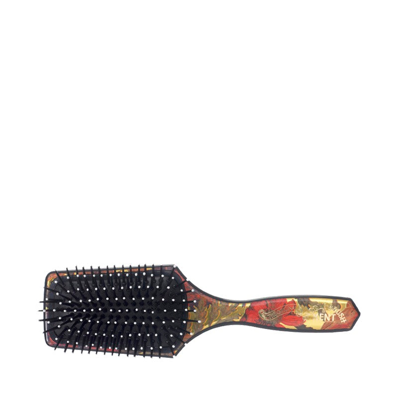 Create sleek styles and finishes with this small , 9 row cushion paddle brush with ball tip quills. For grooming, detangling, and smoothing medium length hair , or a child's long hair. A beautiful floral design with gold foil effect, perfectly poised to be the centerpiece of your dressing table