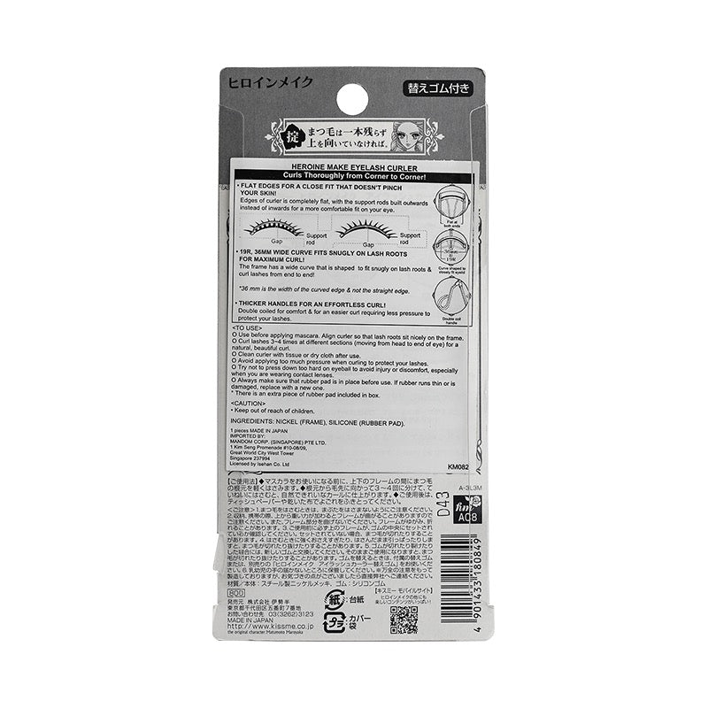 Edges of curler is completely flat, with the support rods built outwards instead of inwards for a more comfortable fit on your eye. The frame has a wide curve of 36mm wide that is shaped to fit snugly on lash roots and curl lashes from end to end. Double coiled for comfort and for an easier curl requiring less pressure to protect your lashes.