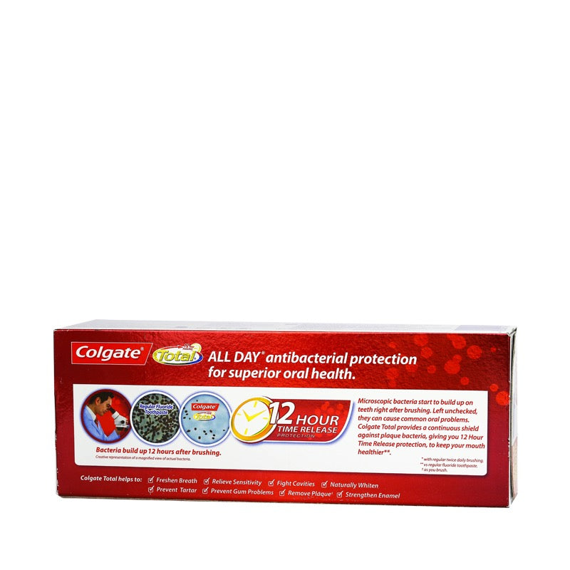 Microscopic bacteriaa start to build up on teeth right after brushing. Left unchecked, they can cause common oral problems. Colgate Total provides a continuous shield against plaque bacteria, giving you 12 Hour Time Release protection, to keep your mouth healthier*.