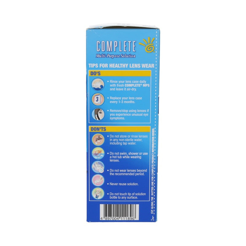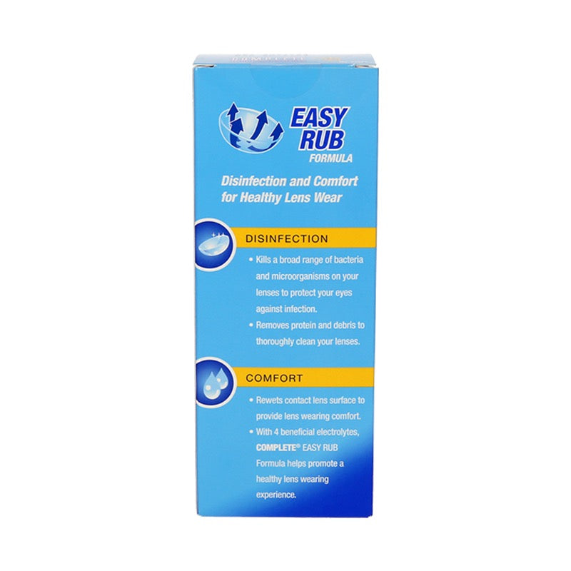 COMPLETE® Multi-Purpose Solution Easy Rub® Formula promotes disinfection by removing and killing a broad range of bacteria and microorganisms on your lenses to help protect your eyes against infection. COMPLETE®...